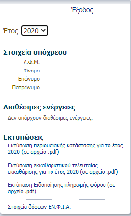 και εν συνέχεια επιλέγετε από τις Εκτυπώσεις "Εκτύπωση εκκαθαριστικού τελευταίας εκκαθάρισης για το έτος 2020 (σε αρχείο .pdf)".